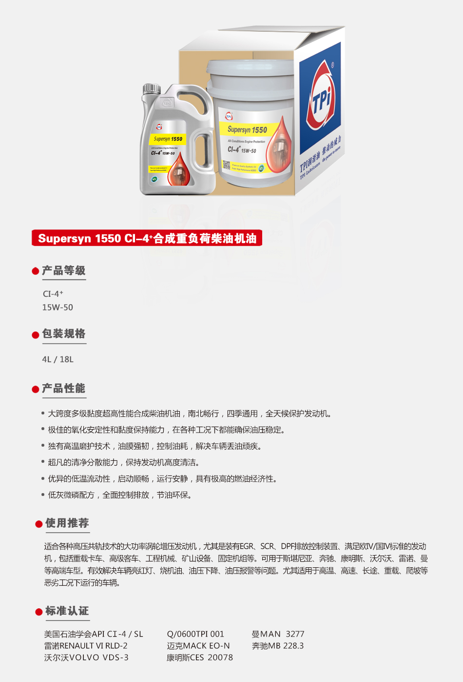 Supersyn 1550合成重負(fù)荷柴油機(jī)油