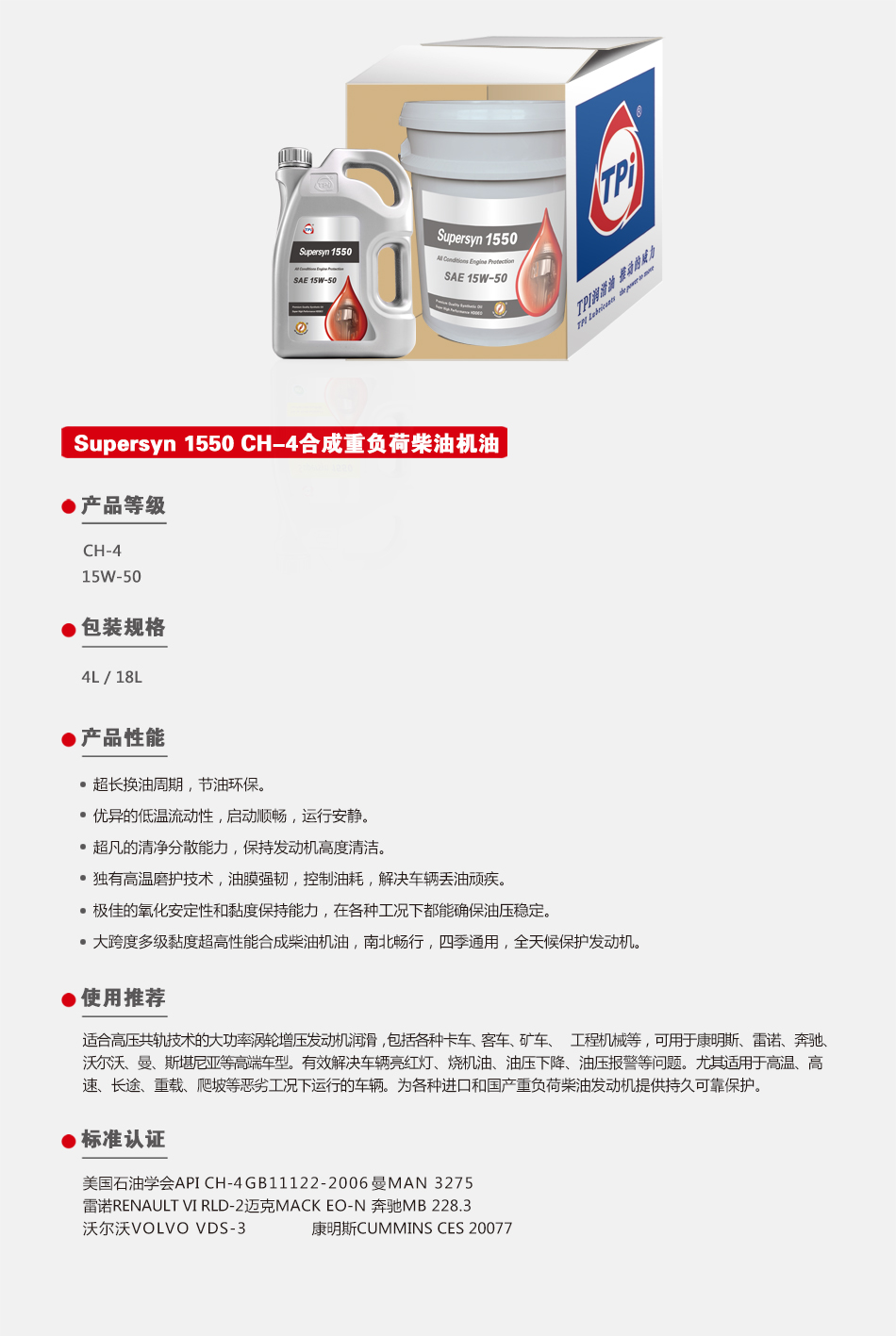 Supersyn1550CH-4合成重負荷柴油機油