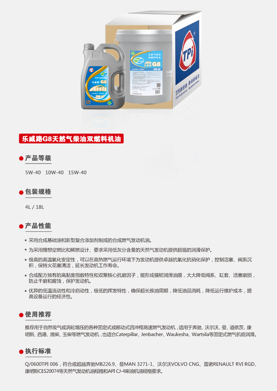 樂威路G8天然氣柴油雙燃料機(jī)油