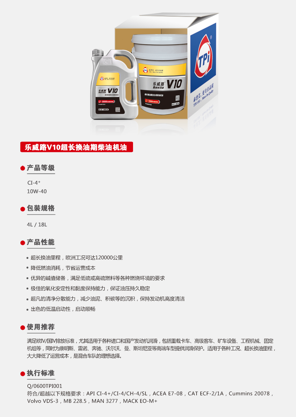 樂(lè)威路V10超長(zhǎng)換油期全合成柴油機(jī)油