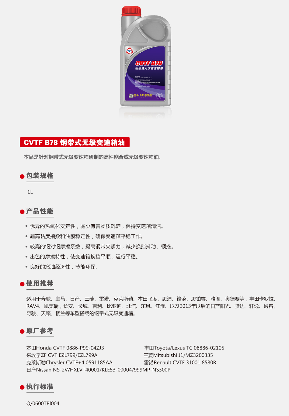 CVTF鋼帶式無級變速箱油B78